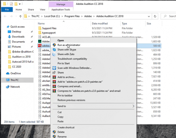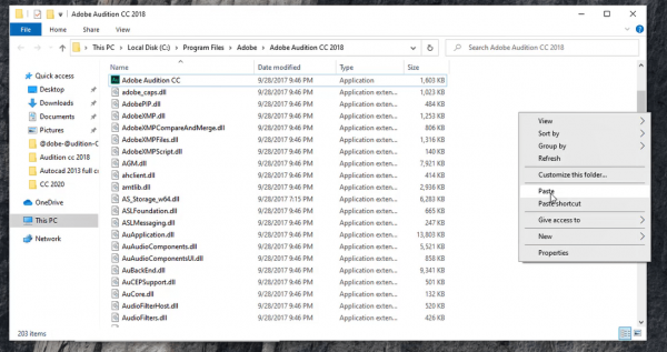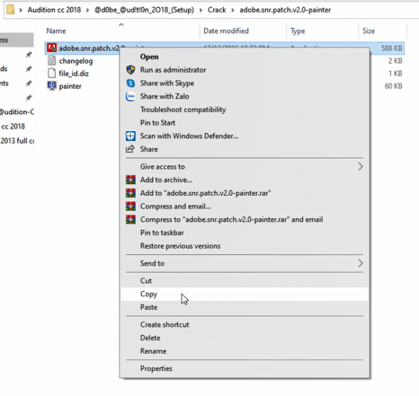 Bước 5: Mở File Adobe Audition CC 2018 vừa tải về copy File trong thư mục.