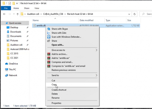 Bước 7: Mở File Adobe Audition CS6 vừa tải về copy File trong thư mục.
