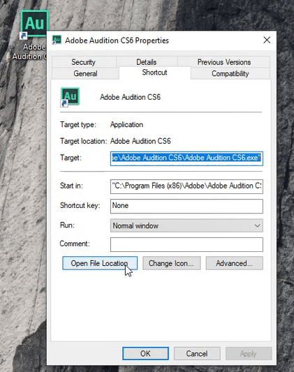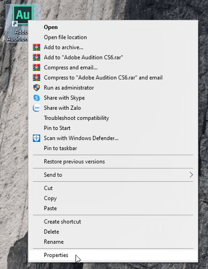 Bước 8: Bấm chuột phải vô Icon Adobe Audition CS6 => Properties