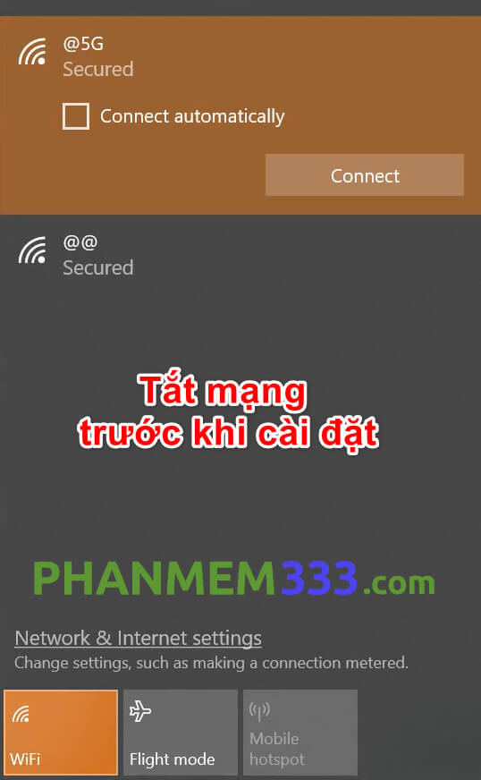 Trước khi cài đặt, bạn tạm thời tắt mạng internet.