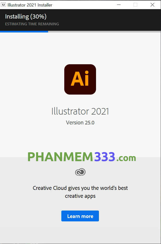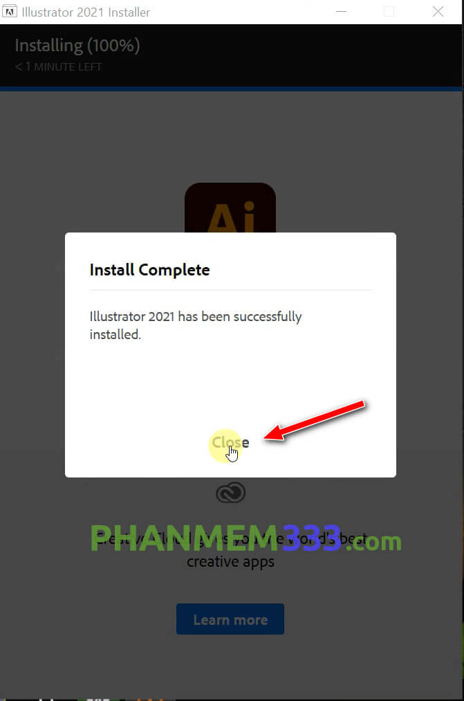Đợi khoảng 5 phút để phần mềm Adobe Illustrator CC 2021 hoàn tất cài đặt.