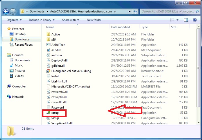 Bước 1: Tải Autocad 2009 giải nén, chạy file “Setup.exe”