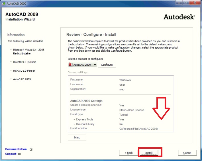 Hướng dẫn cài đặt Autocad 2009