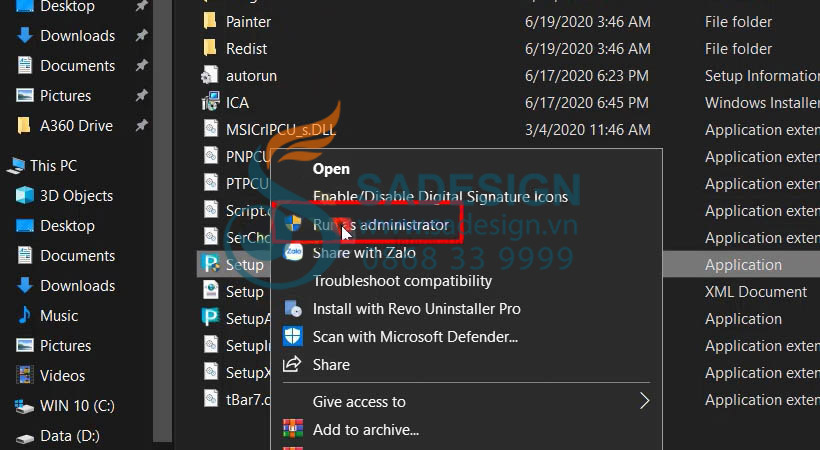 Bước 3 : Chạy file setup bằng quyền Admin