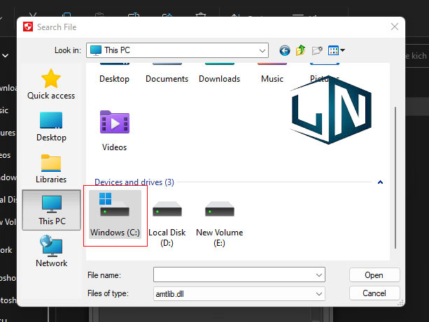 Bạn tìm tới file amtlib.dll, rồi nhấn Open.