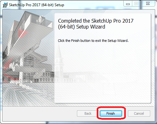 Sau đó, bạn chọn “Install” và kết thúc quá trình cài đặt Sketchup 2017 bằng nút “finish”