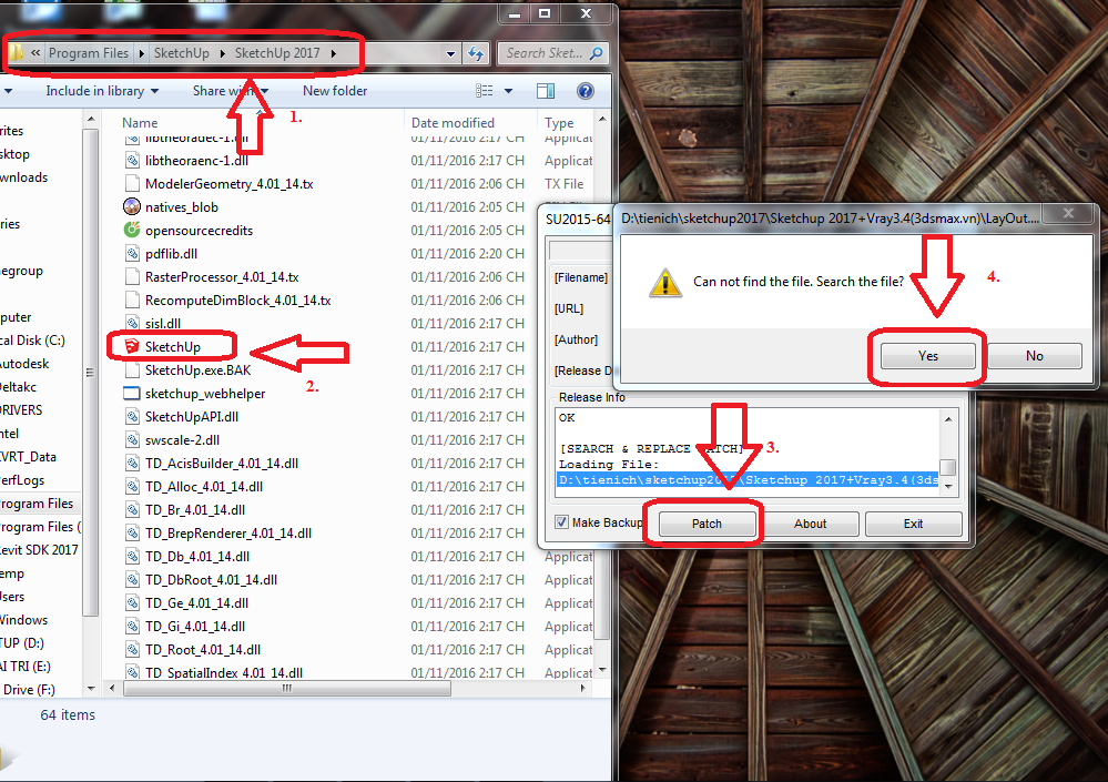 B2: Giớ thì mình sẽ tiến hành Crack phần mềm SketchUP 2017