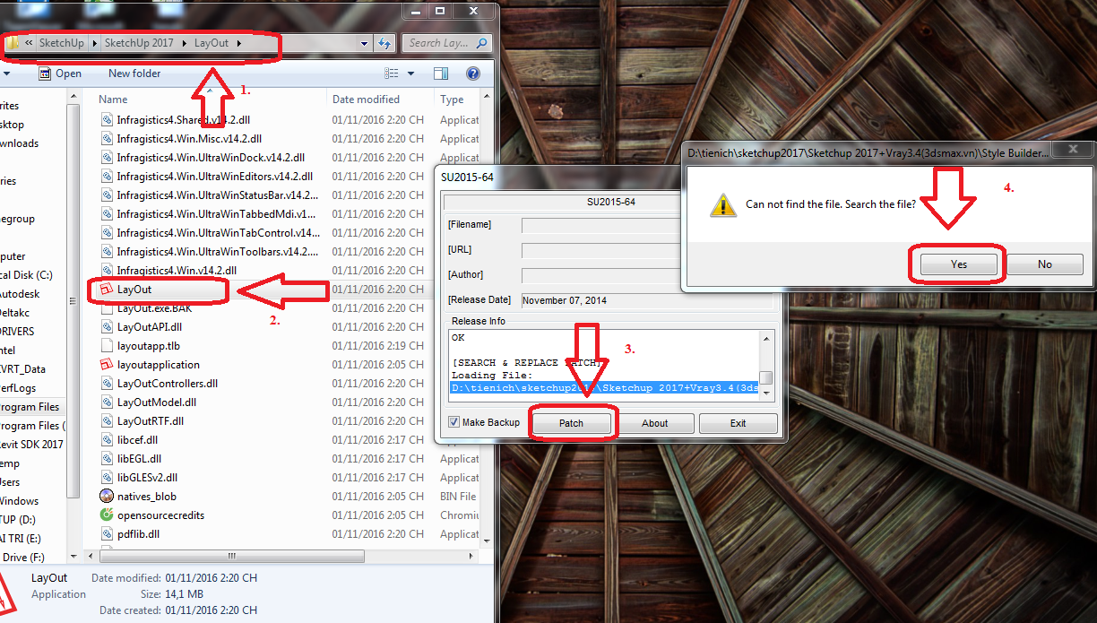 – Sau đó thì hãy chọn “Patch” => “Yes” để tìm đường dẫn. Xem hình kèm theo