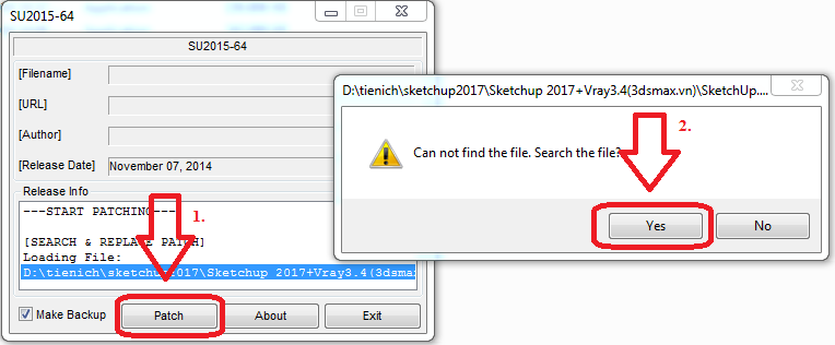 – Sau đó thì hãy chọn “Patch” => “Yes” để tìm đường dẫn. Xem hình kèm theo